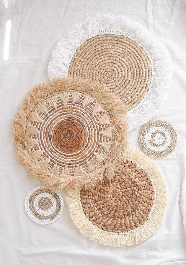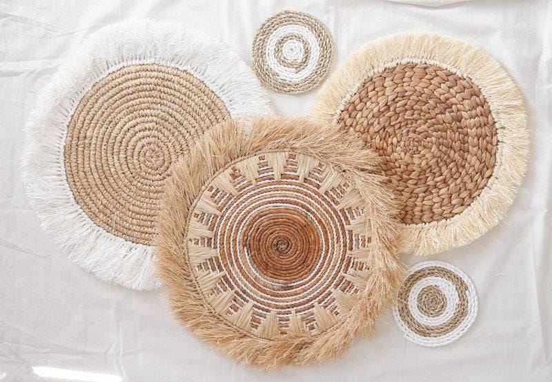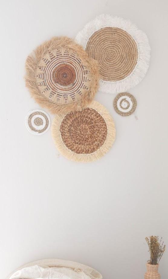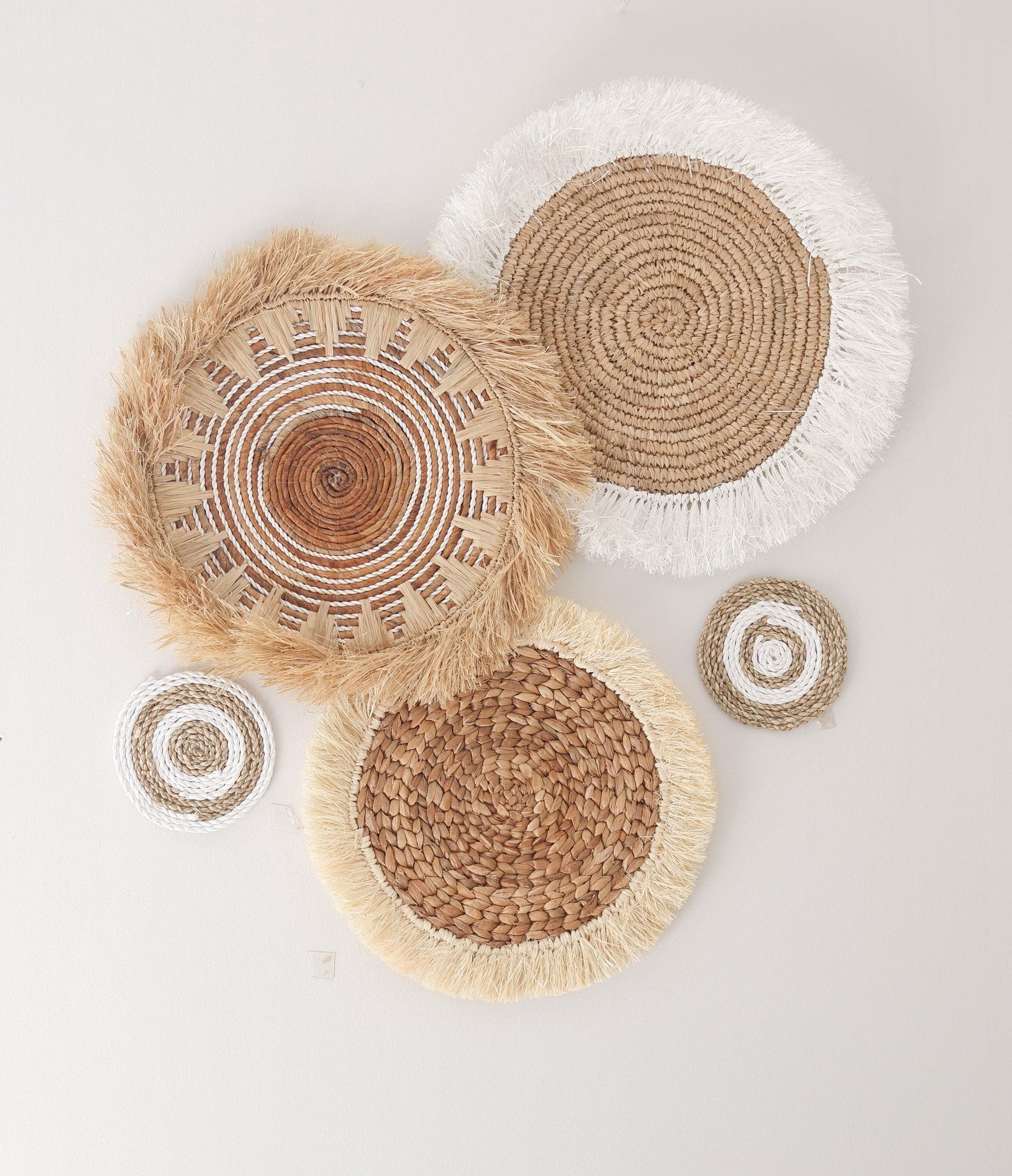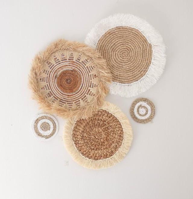Basket Wall Decor Set, Set of Wall Decor, Bohemian Wall Decoration, Rustic Boho Style, Fringe Boho Wall Hanging, Boho Basket Hanging Wall Decor, Banana Leaf Basket Wall Decor, Banana Bark Hanging Wall Decor, Bohemian Decoration, Natural Wall Decor, Raffia Fringe Wall Basket, Macrame Basket Wall Decor, Wicker Natural Straw Wicker, Woven Fringe Wall Basket, Round Braided Woven Wicker Wall Hanging Decor, Natural Round Wall Basket, Rustic Home Decor Style, Bohemian Home Decor