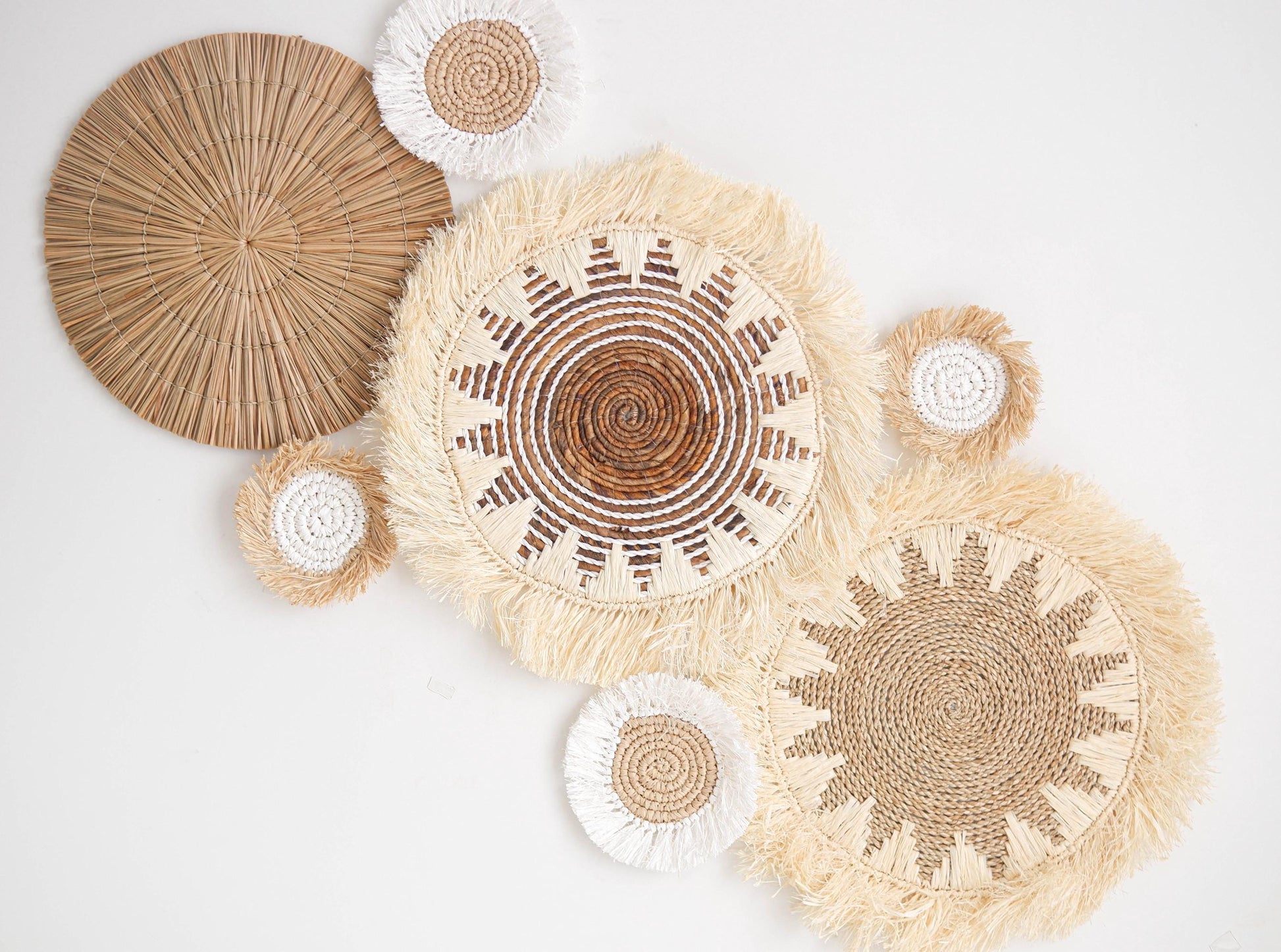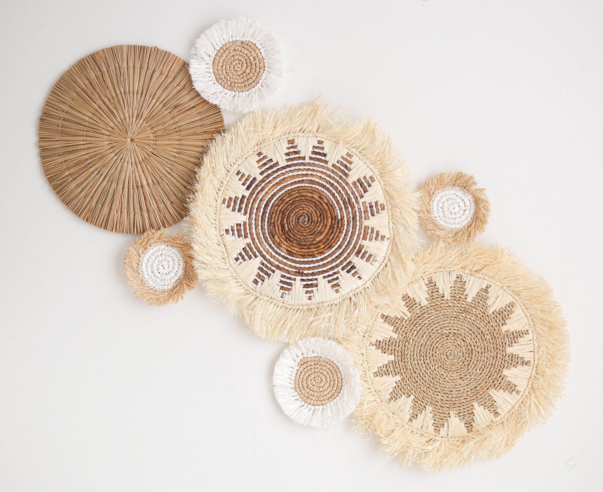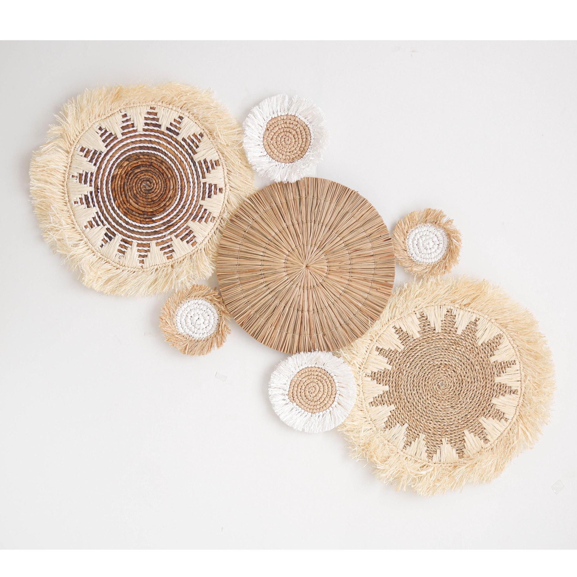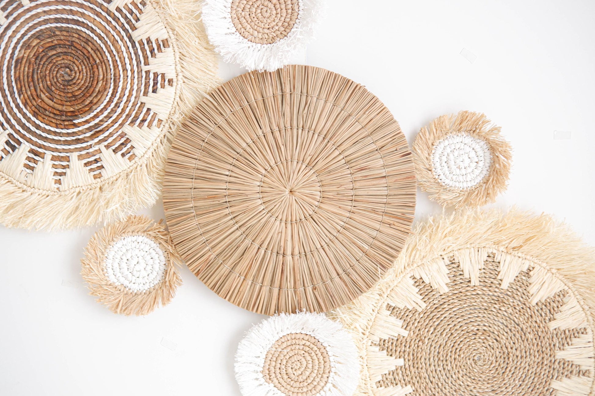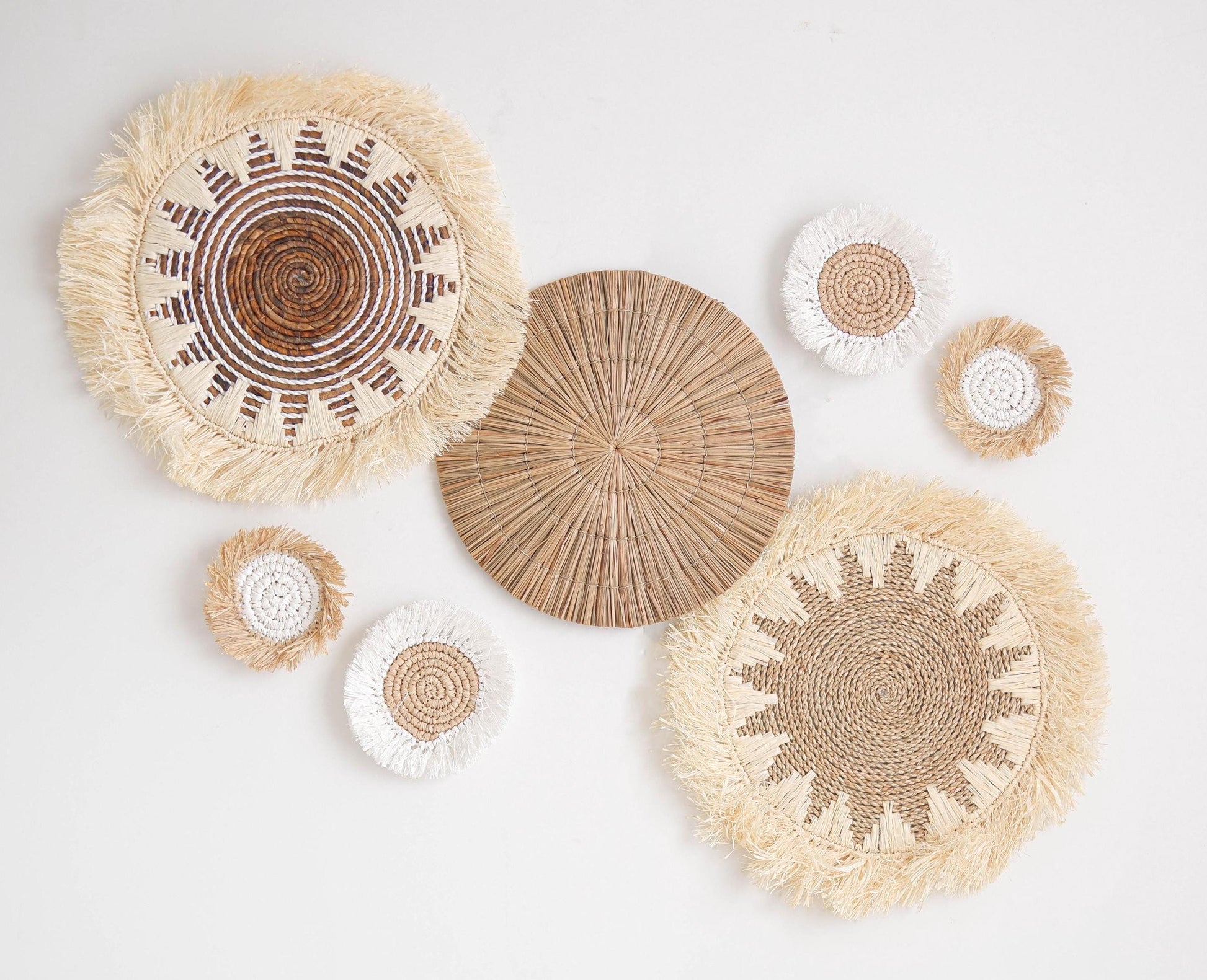 Basket Wall Decor Set, Set of Wall Decor, Bohemian Wall Decoration, Rustic Boho Style, Fringe Boho Wall Hanging, Boho Basket Hanging Wall Decor, Banana Leaf Basket Wall Decor, Banana Bark Hanging Wall Decor, Bohemian Decoration, Natural Wall Decor, Raffia Fringe Wall Basket, Macrame Basket Wall Decor, Wicker Natural Straw Wicker, Woven Fringe Wall Basket, Round Braided Woven Wicker Wall Hanging Decor, Natural Round Wall Basket, Rustic Home Decor Style, Bohemian Home Decor