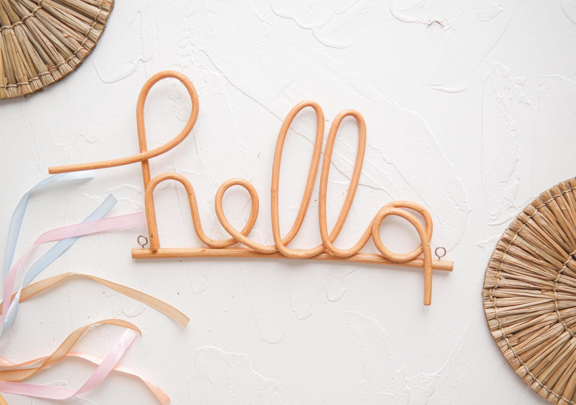 Hello Sign Rattan Wall Decor, Boho Nursery Wall Decor, Hello Sign for Front Door, Rustic Hello Wall Hanging, Home Signs For Entry