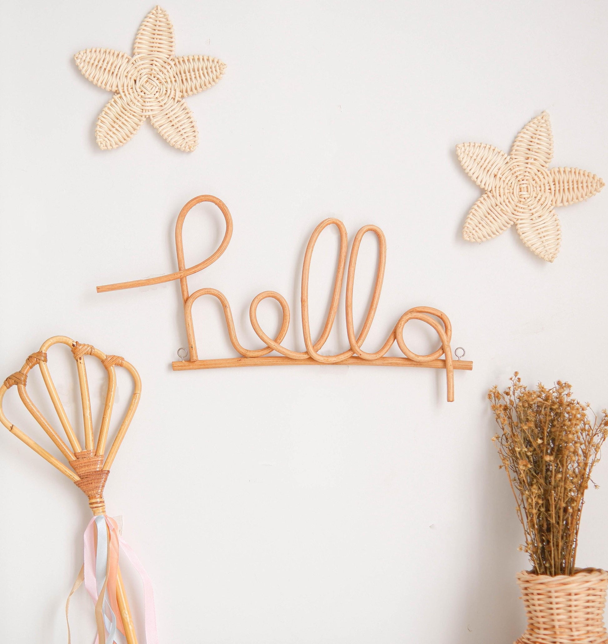 Hello Sign Wall Decor made from rattan materials are great for decorating kids room, nursery ornament, nursery decoration, baby room wall decor, and kids play room, they also suit for shelf decoration. Adding this pack of rattan decoration will elevate the look of your home with a little touch of boho or rustic vibes.