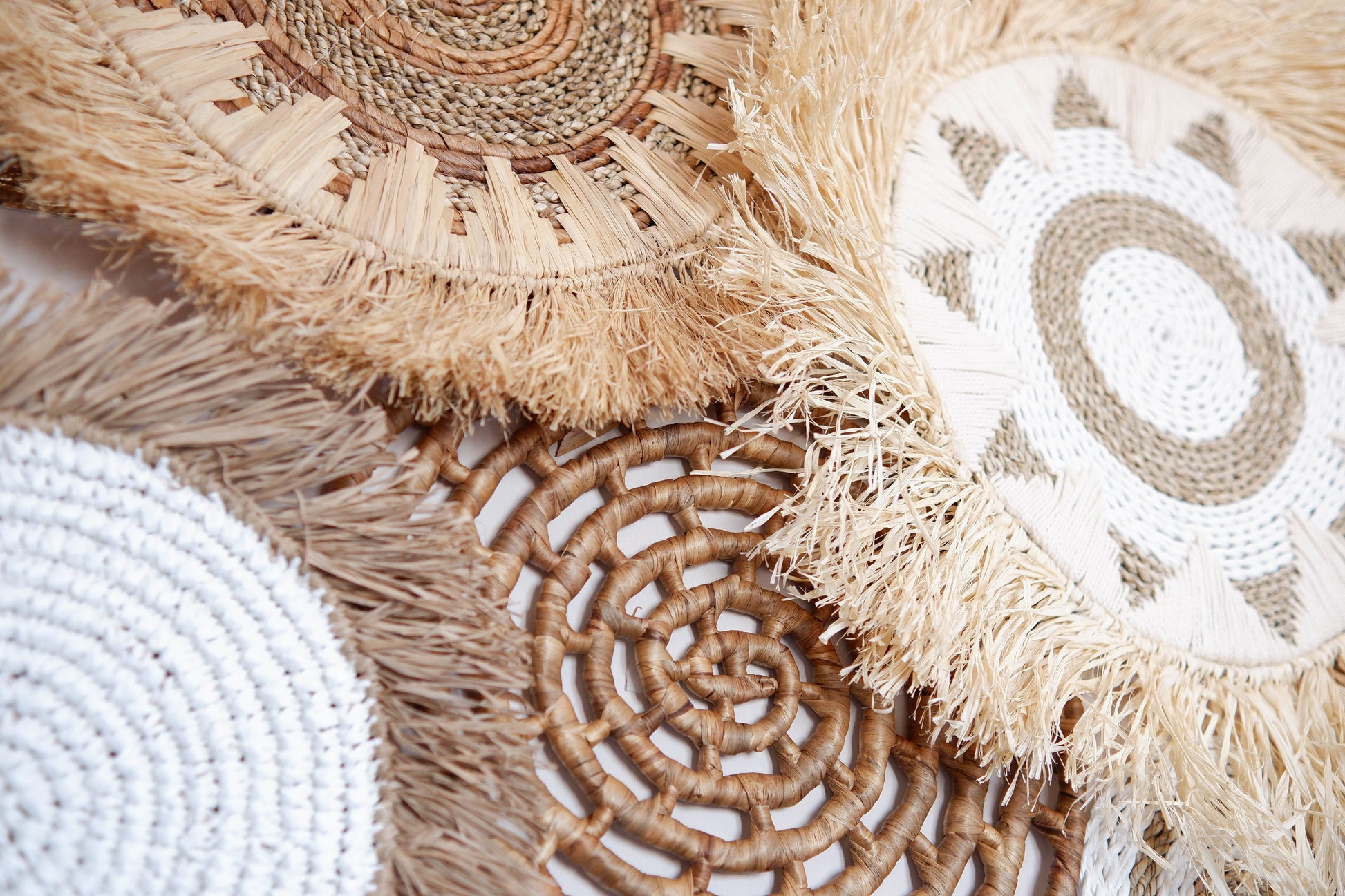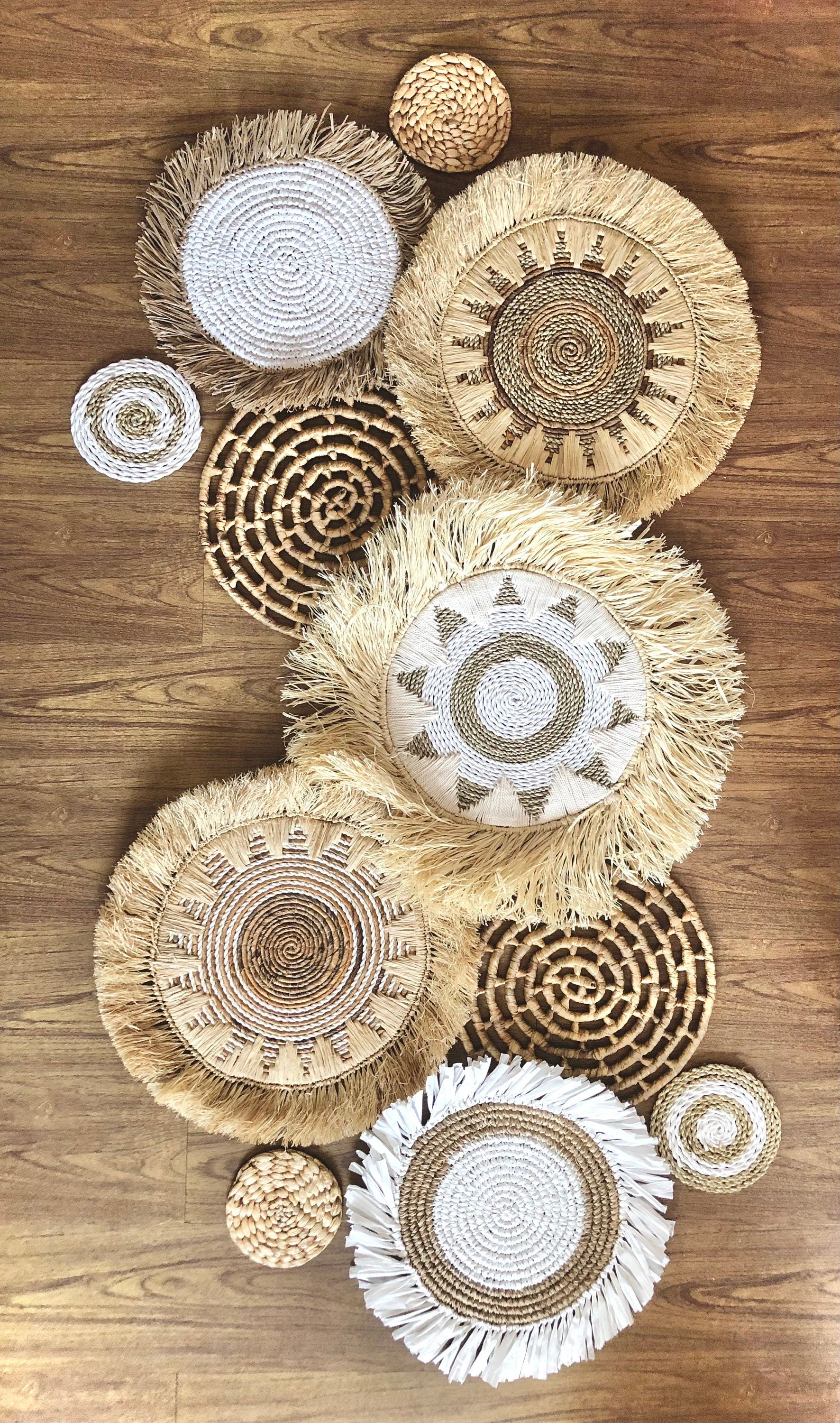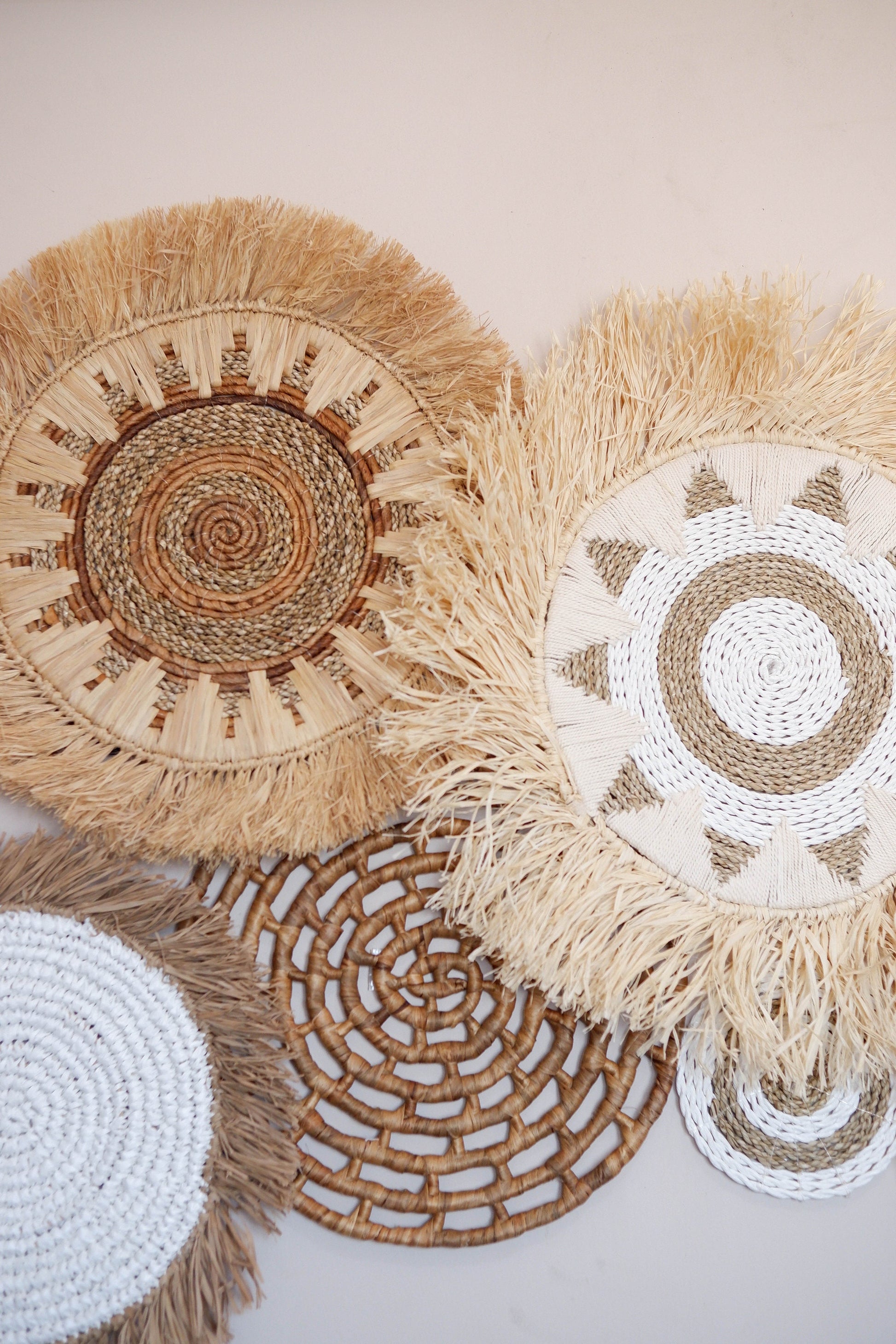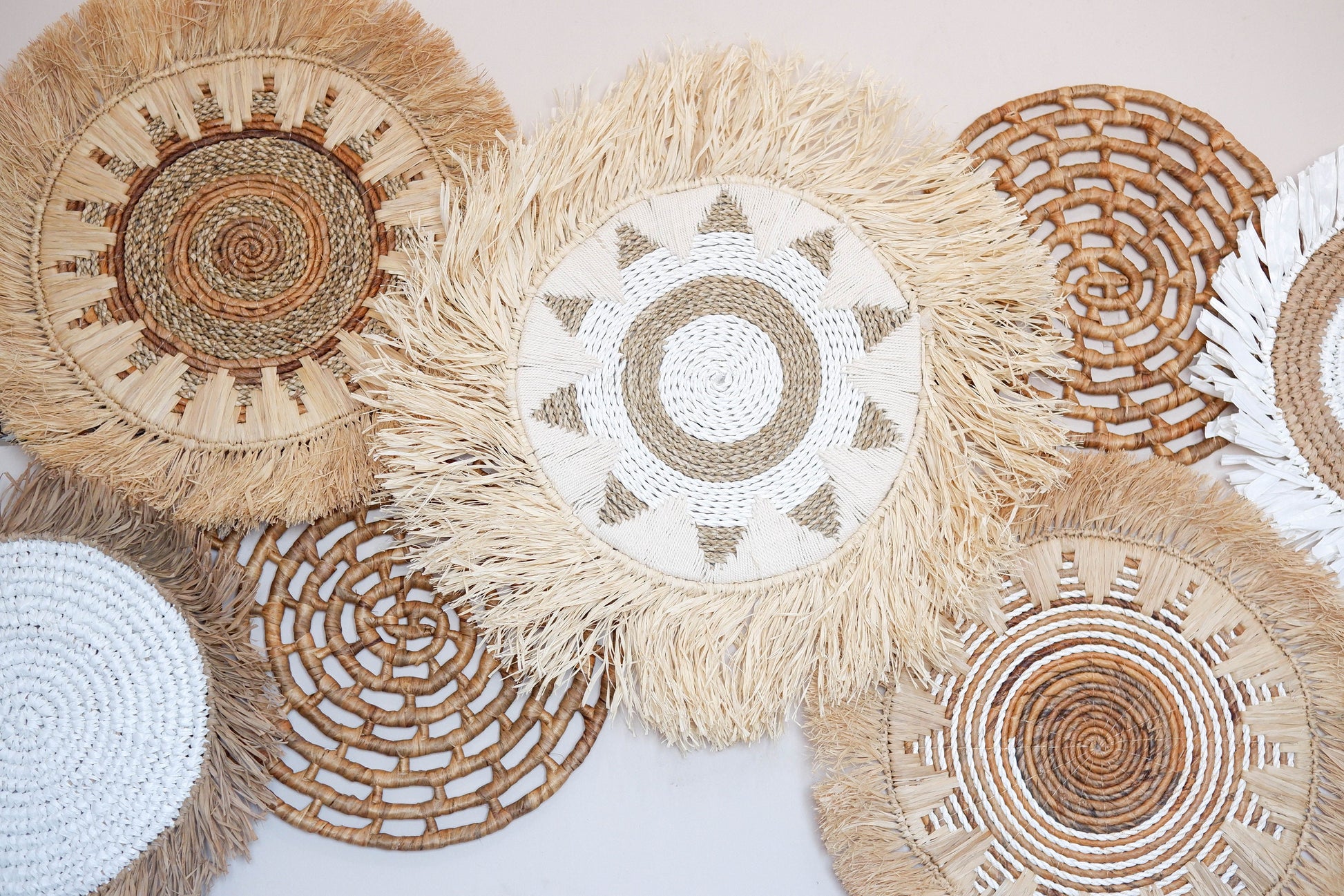 Basket Wall Decor Set, Set of Wall Decor, Bohemian Wall Decoration, Rustic Boho Style, Fringe Boho Wall Hanging, Boho Basket Hanging Wall Decor, Banana Leaf Basket Wall Decor, Banana Bark Hanging Wall Decor, Bohemian Decoration, Natural Wall Decor, Raffia Fringe Wall Basket, Macrame Basket Wall Decor, Wicker Natural Straw Wicker, Woven Fringe Wall Basket, Round Braided Woven Wicker Wall Hanging Decor, Natural Round Wall Basket, Rustic Home Decor Style, Bohemian Home Decor