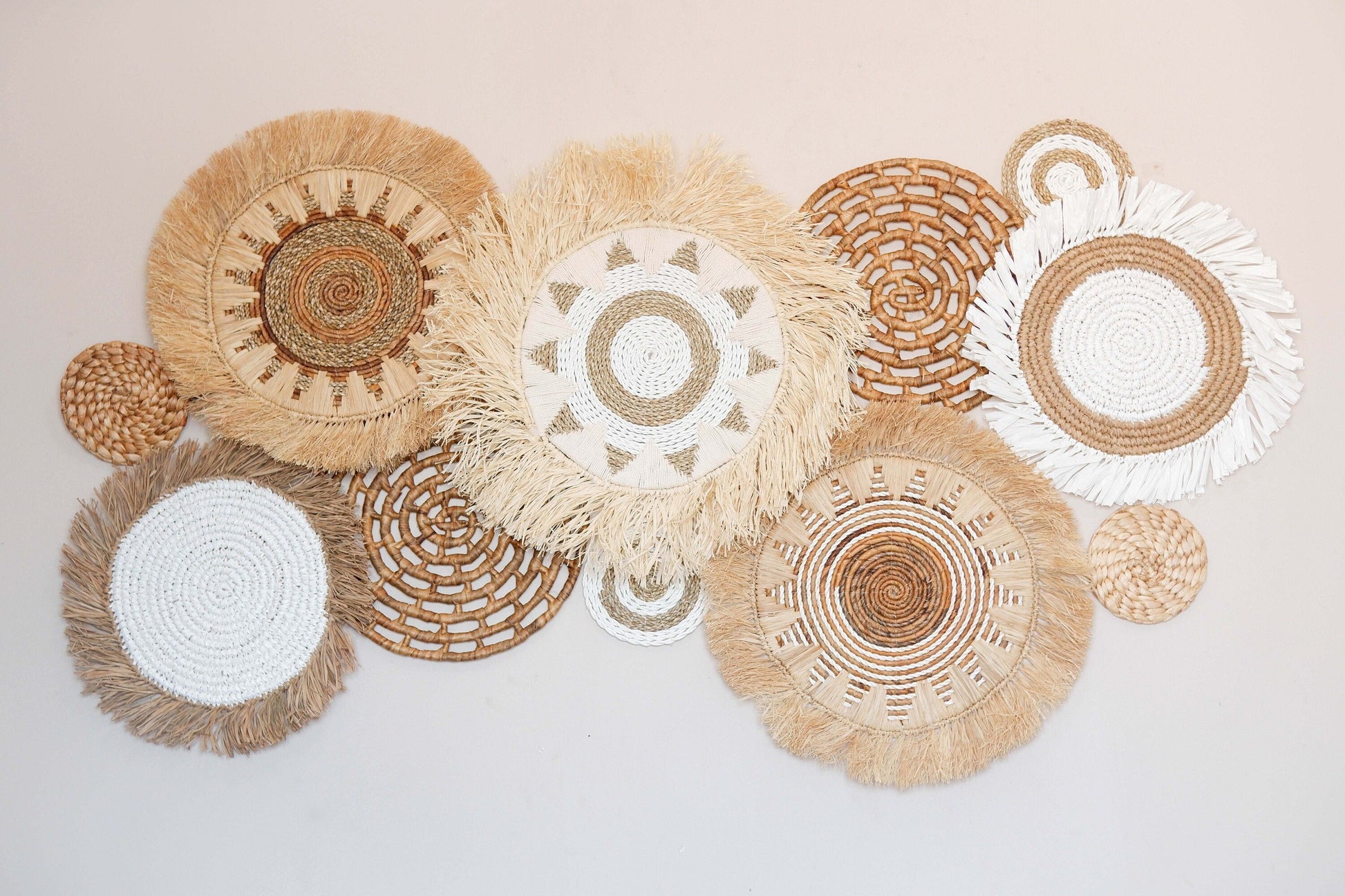 Natural Boho Basket Wall Decor Set 11, Wicker Basket Wall Decor, Bohemian Wall Basket Decor, Seagrass Wall Decor, Fringe Hanging Wall Decor