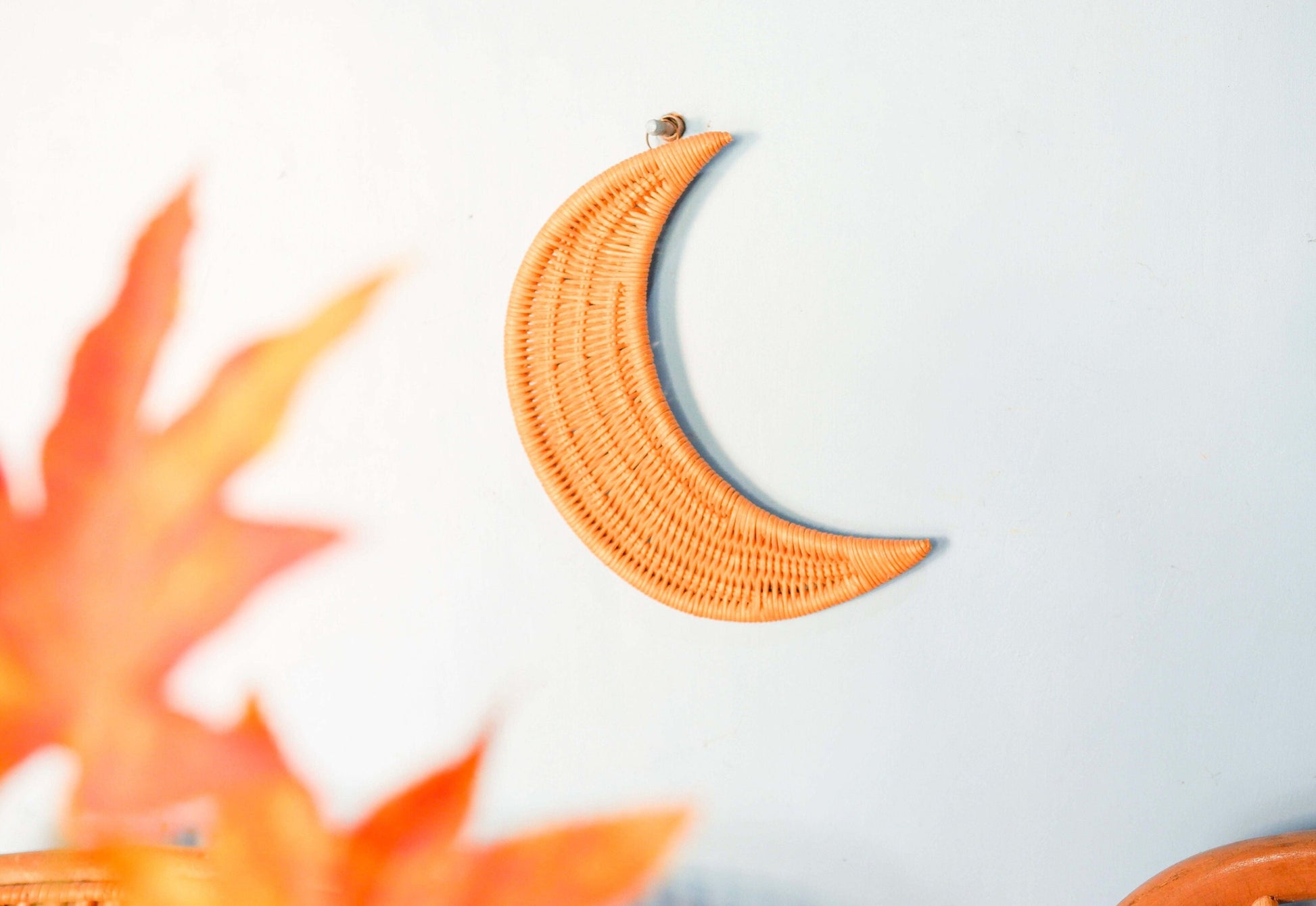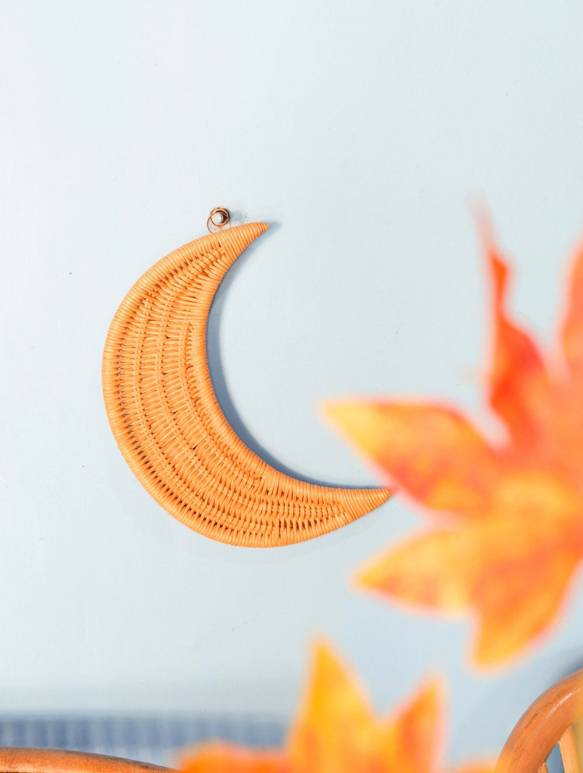 Rattan Moon Nursery Wall Decor, Rattan Cresent Moon Wall Hanging, Nursery Wall Decor, Wicker Nursery Shelf Decor, Boho Kids Playroom Decor
