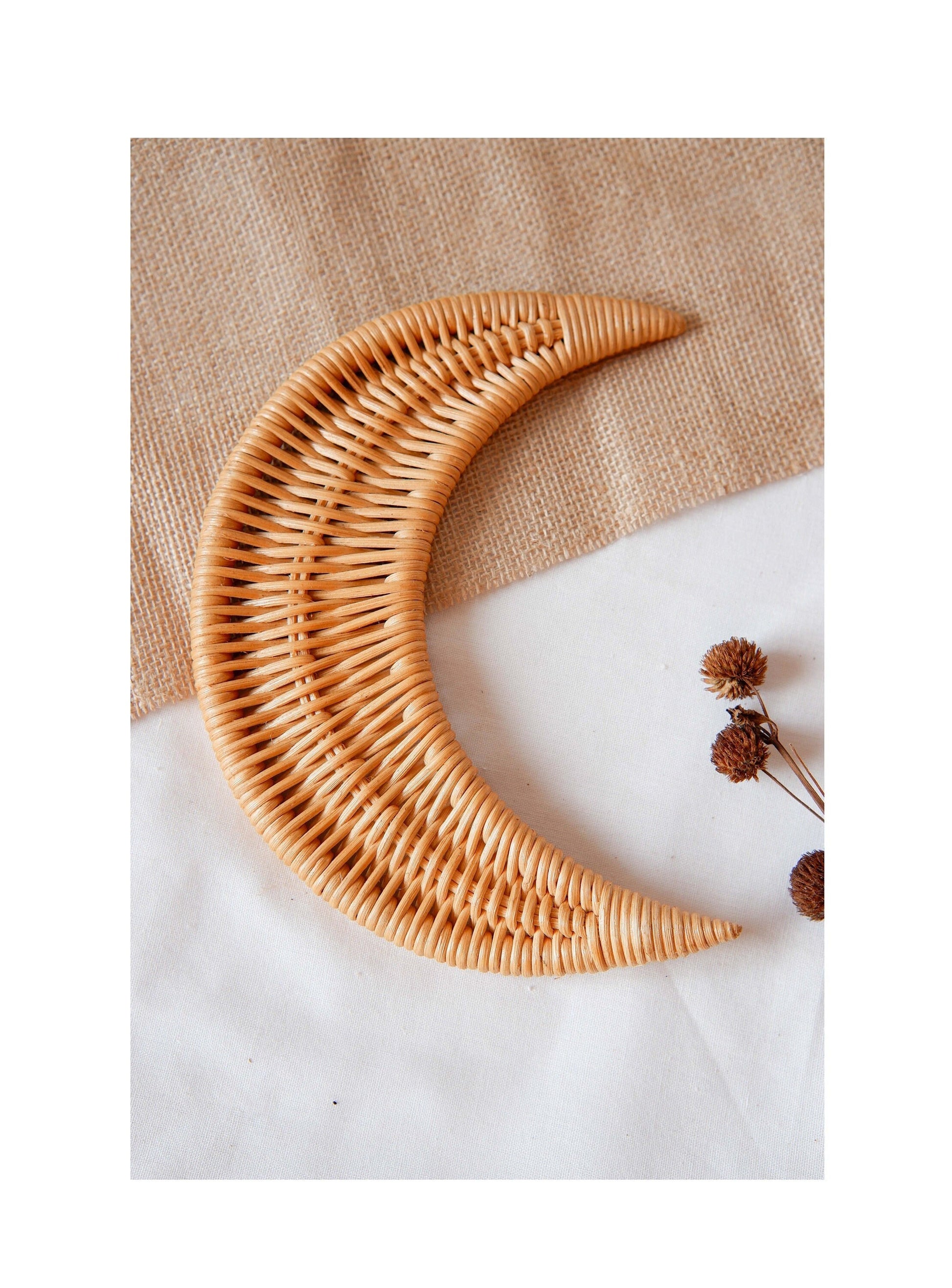 Rattan Nursery Moon Wall Decor are great for decorating kids room, nursery ornament, nursery decoration, baby room wall decor, and kids play room, they also suit for shelf decoration. Adding this haf moon rattan decoration will elevate the look of your home with a little touch of boho or rustic vibes.
