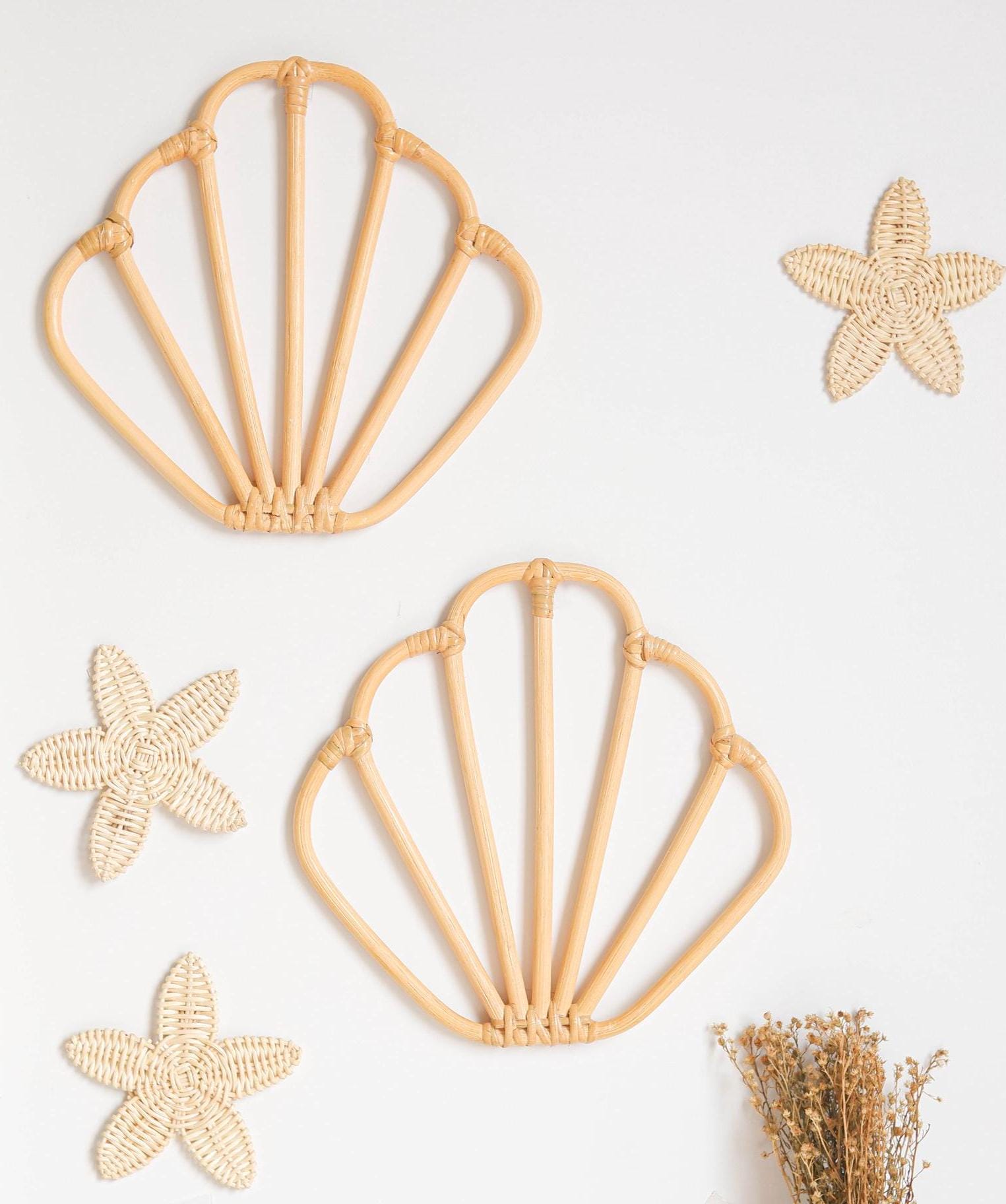 Boho Nursery Decoration, Rattan Wall Decor, Rattan Shell Wall Decor, Housewarming Gift, Newbor Gift, Baby Girl Room Decor, Rattan Decoration, Newborn Gift, New Mom Gift, Rattan Nursery Ornaments, Beach House Decor, Tropical Home Decoration, Natural Boho Decor, Wicker Rattan Nursery Decor, Natural Home Decor, Beach House Decor, Kids Rattan Toys, Rattan Kids House