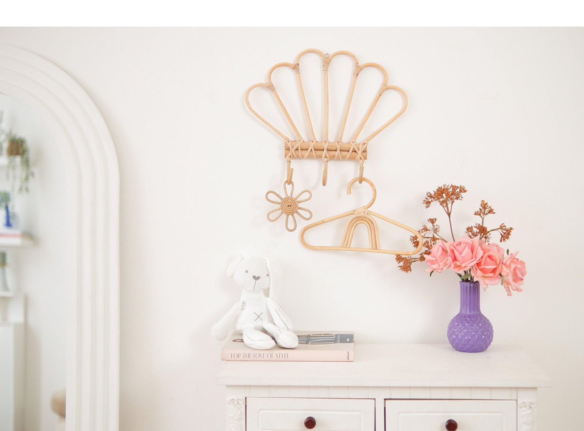 Ratan Shell Wall Hook. This cute hanging hooks are perfect for brightens and adds a playfull touch to kids playroom, nurseries, kids bedroom, entryway, and pretty little play spaces. Use this for hanging items such as bibs, small towel, baby clothes, small blankets, keys, and other cute decor.