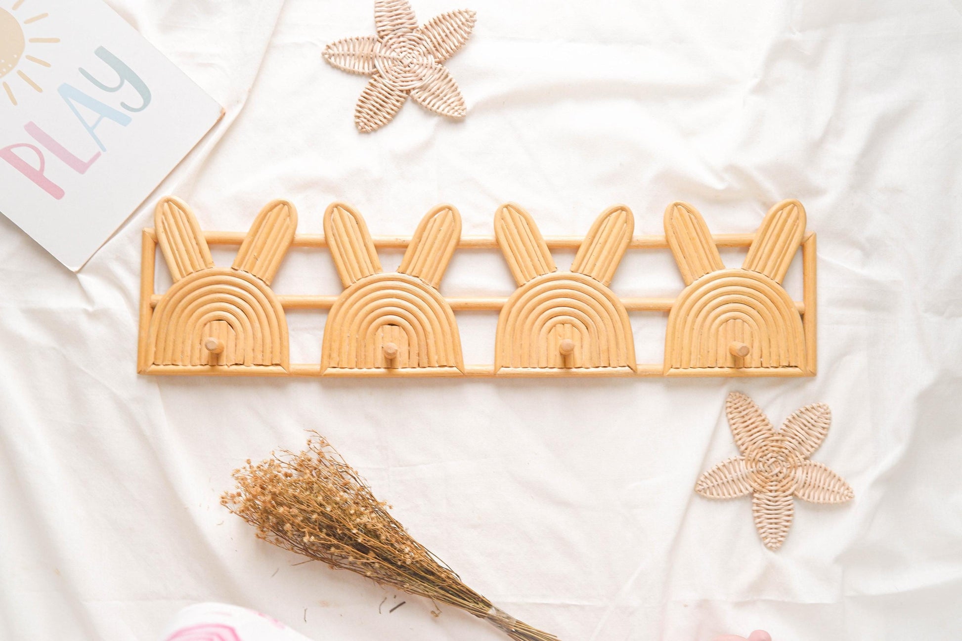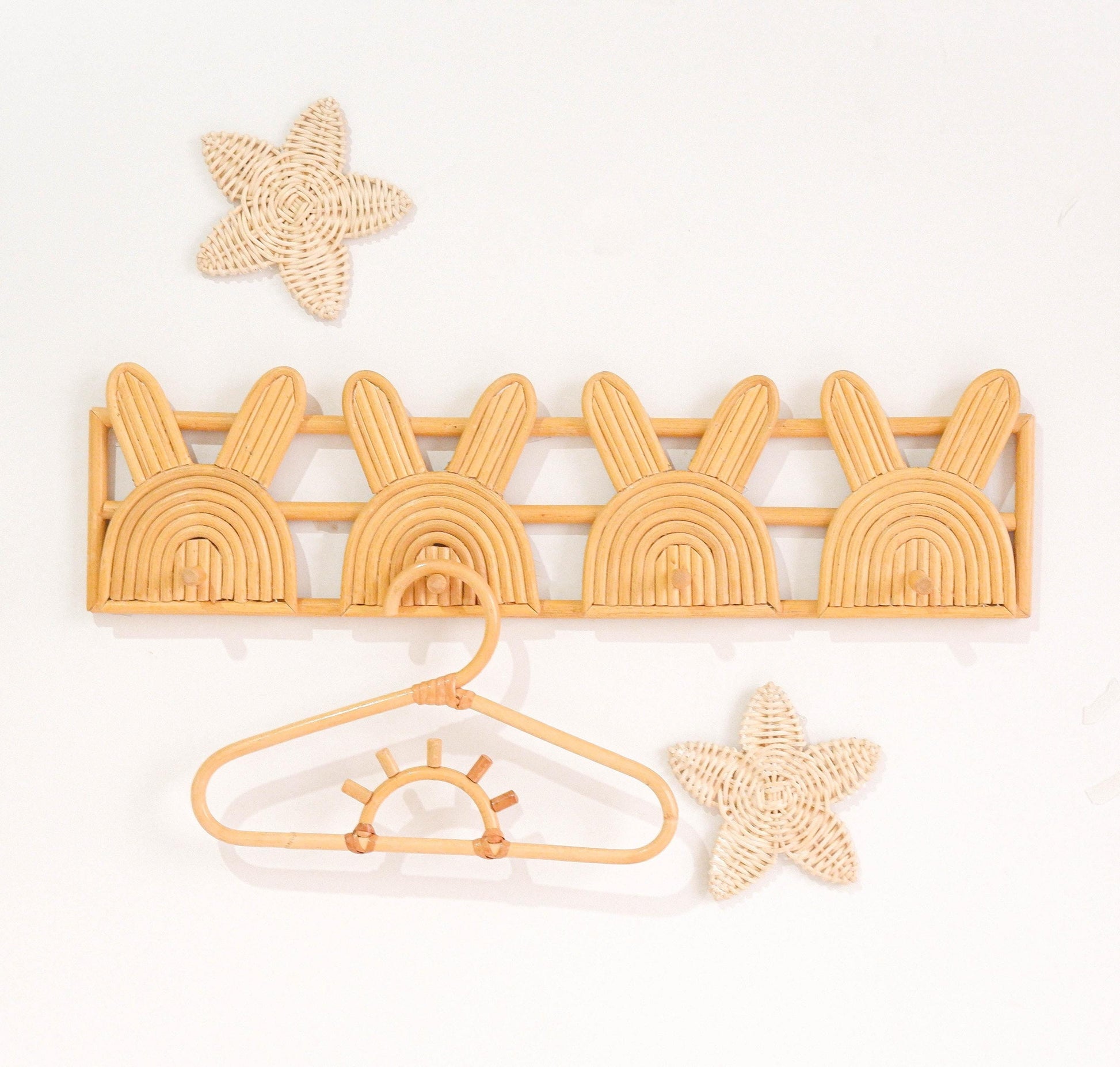 Ratan Nursery Wall Hook. This cute hanging hooks are perfect for brightens and adds a playfull touch to kids playroom, nurseries, kids bedroom, entryway, and pretty little play spaces. Use this for hanging items such as bibs, small towel, baby clothes, small blankets, keys, and other cute decor.